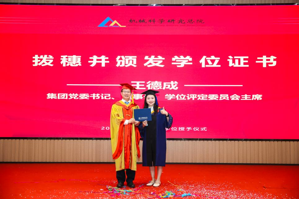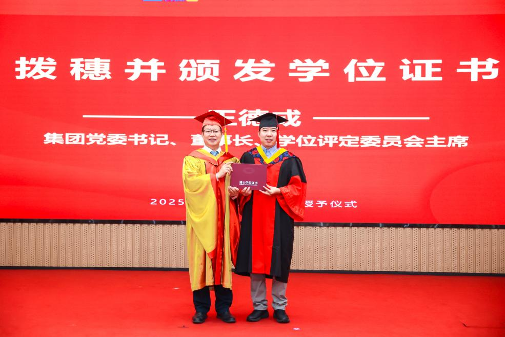 李愛(ài)國(guó)宣讀了《機(jī)械科學(xué)研究總院2025屆畢業(yè)生學(xué)位授予決定》,王德成為每位畢業(yè)生撥穗正冠并頒發(fā)學(xué)位證書(shū)。